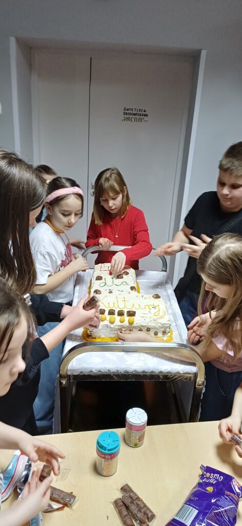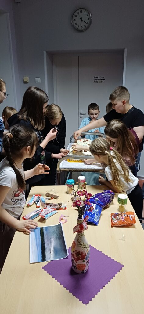 Nie zabrakło też symbolicznego akcentu – tortu, który dzieci i młodzież ozdobiły własnoręcznie, a mamy z ogromnym sercem pomogły go przygotować. Był on nie tylko słodkim zakończeniem, ale też pięknym obrazem współpracy i międzypokoleniowej więzi.